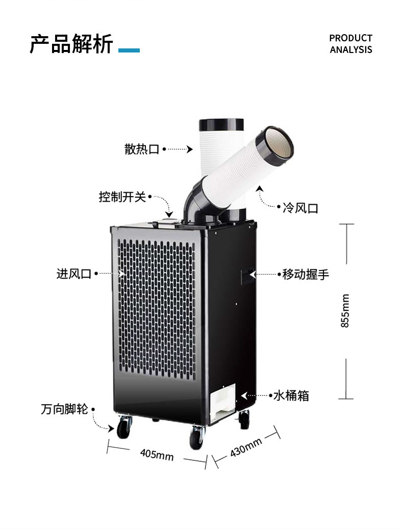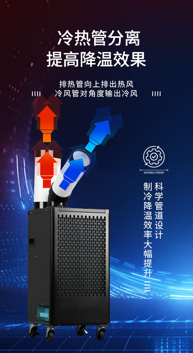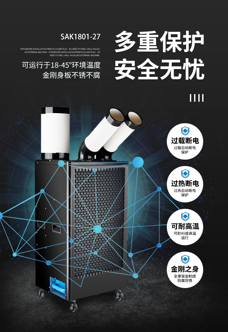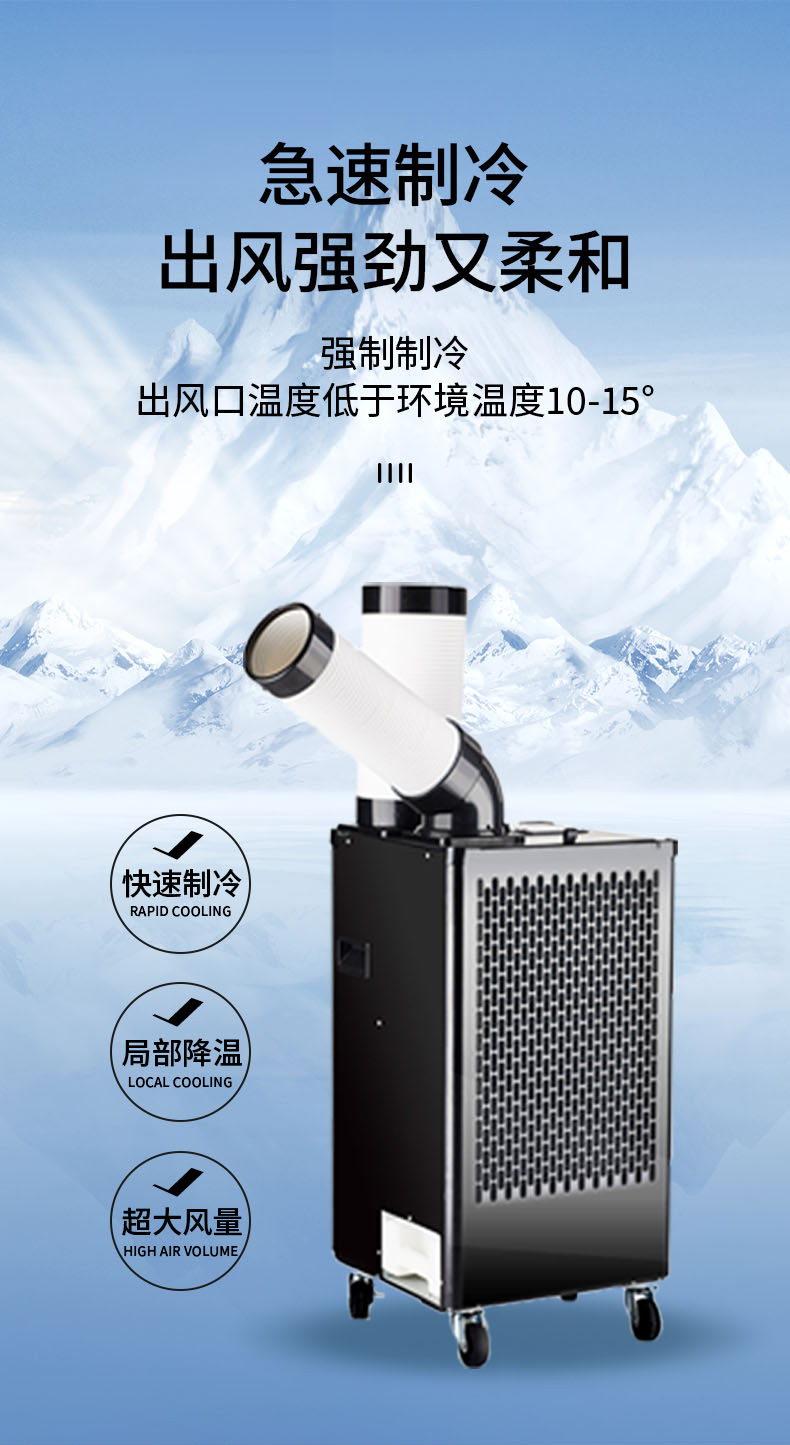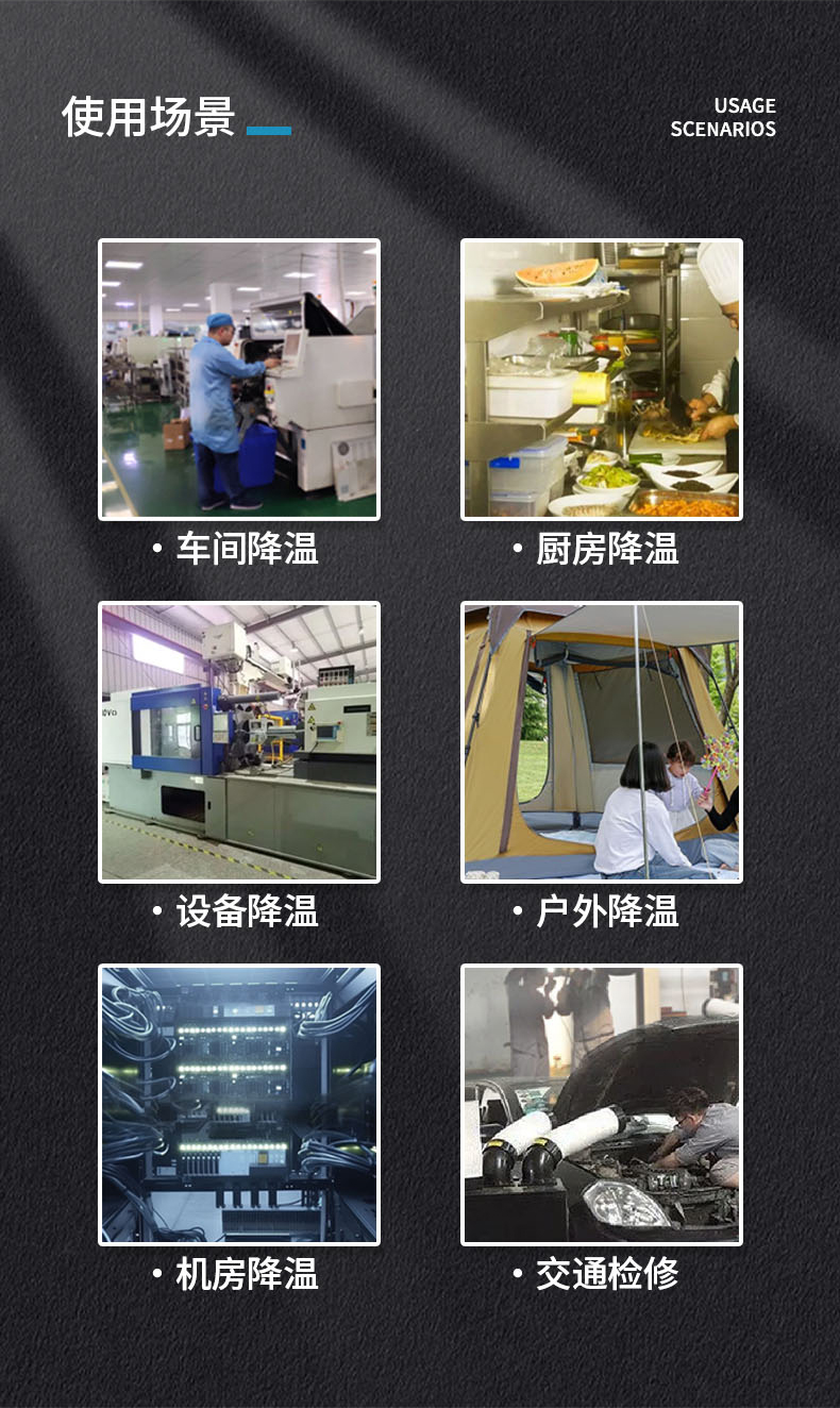 適應各種大面積場所快速降溫:辦公場所降溫、汽車維修降溫、車間制冷、室內制冷、集裝箱制冷、線上降溫、廚房降溫、車間崗位降溫。