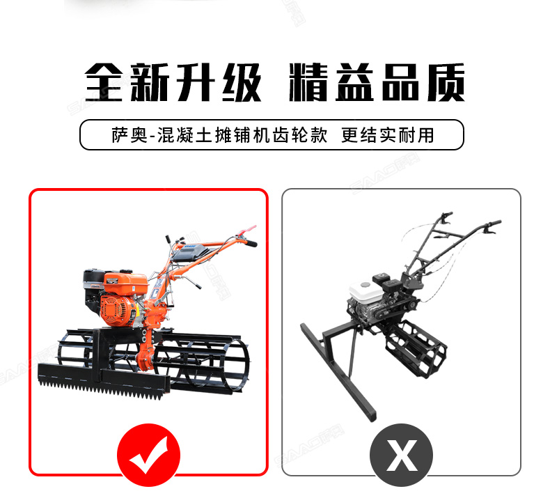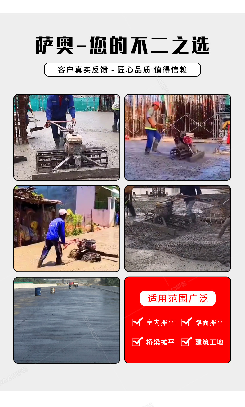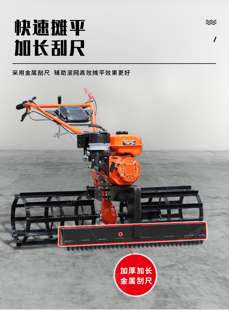 產(chǎn)品介紹: 混凝土攤平機(jī)可用于 刮平混凝土路面 ,增強(qiáng)混凝土的密度。可以用于公路、場(chǎng)院、房頂、河道等混凝土路面 攤鋪整平 。 優(yōu)勢(shì)特點(diǎn): 1. 添加拉紋功能,攤鋪拉紋二合一。