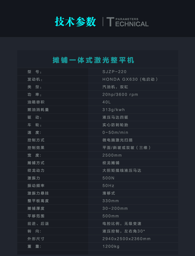 一,應用范圍: 主要用途: 用于現代工業廠房、大型商場、貨場、機場、廣場等大面積混凝土地面的施工,激光攤鋪整平機可滿足對面積大且平整度、水平度要求很好的施工。