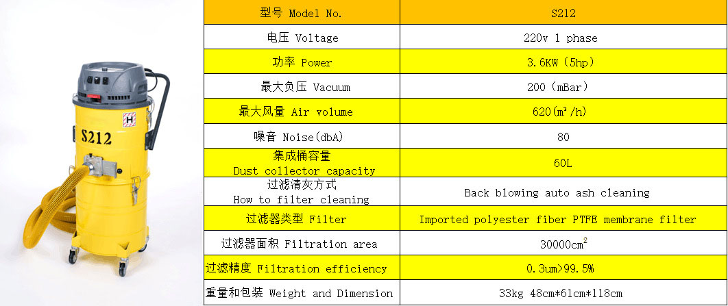 研磨機專用粉塵吸塵器S212