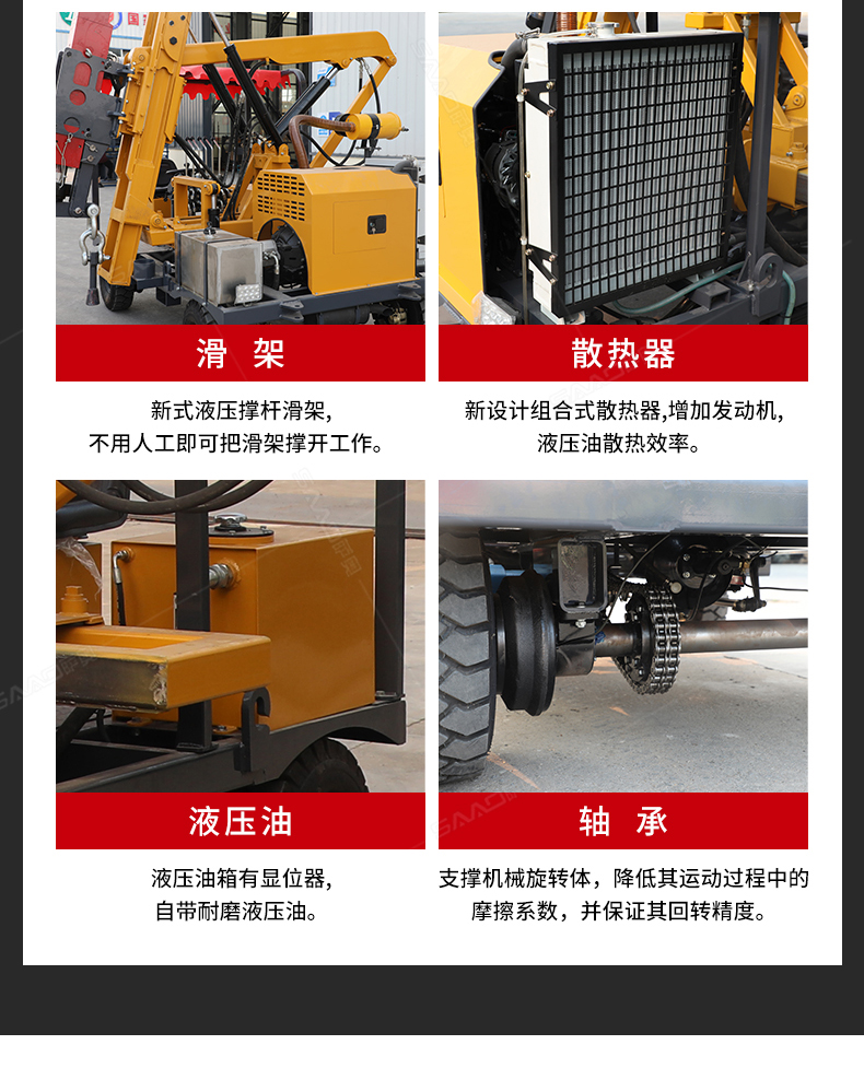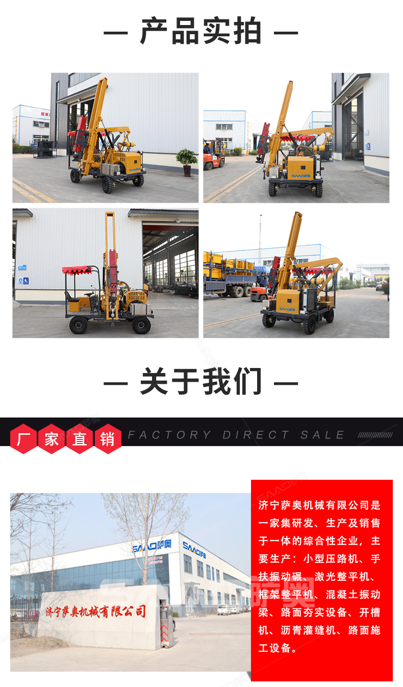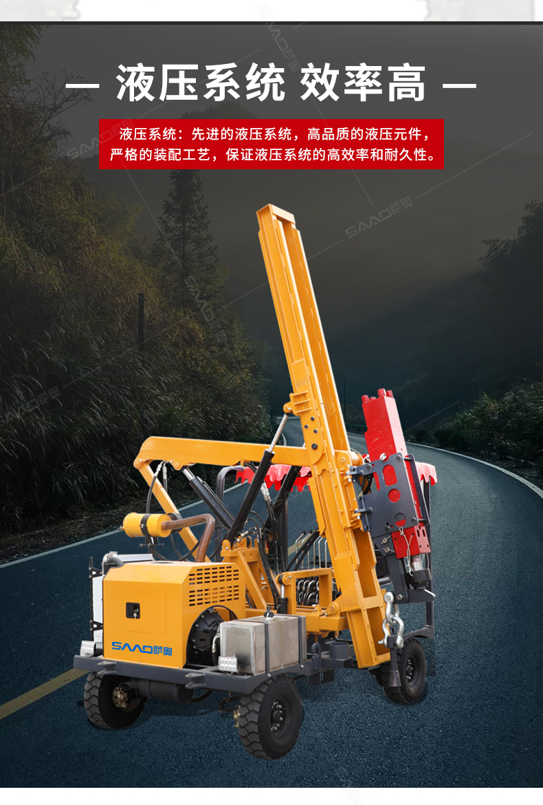小四輪打樁機(jī)適用于公路護(hù)欄鉆孔、打樁、拔樁,其他各種場(chǎng)地打樁(農(nóng)場(chǎng)、園林、果園),公路野外工程施工。