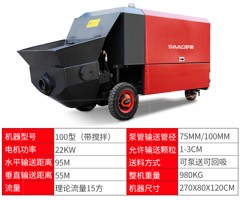 | 9 | 泵管輸送管徑 | 75mm/100mm | 野外施工、農村自建房管徑配100mm |
