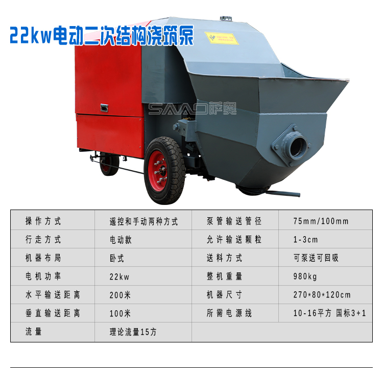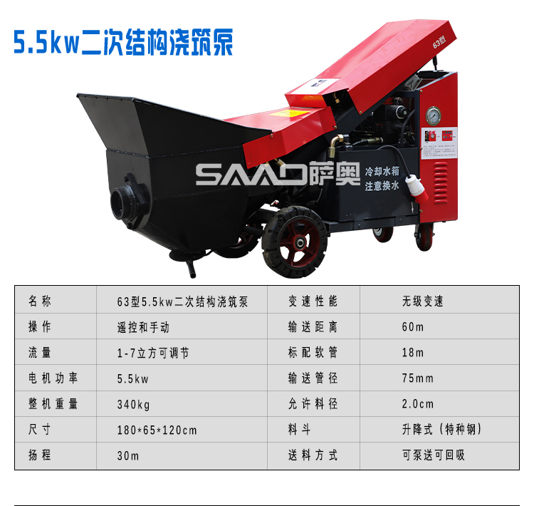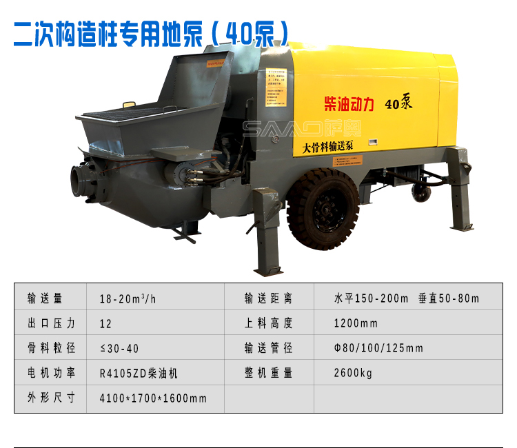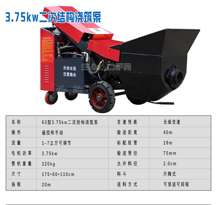 薩奧63型二次構造柱澆筑泵適用于商品房、農村建房、打二次構造柱,圈梁等。