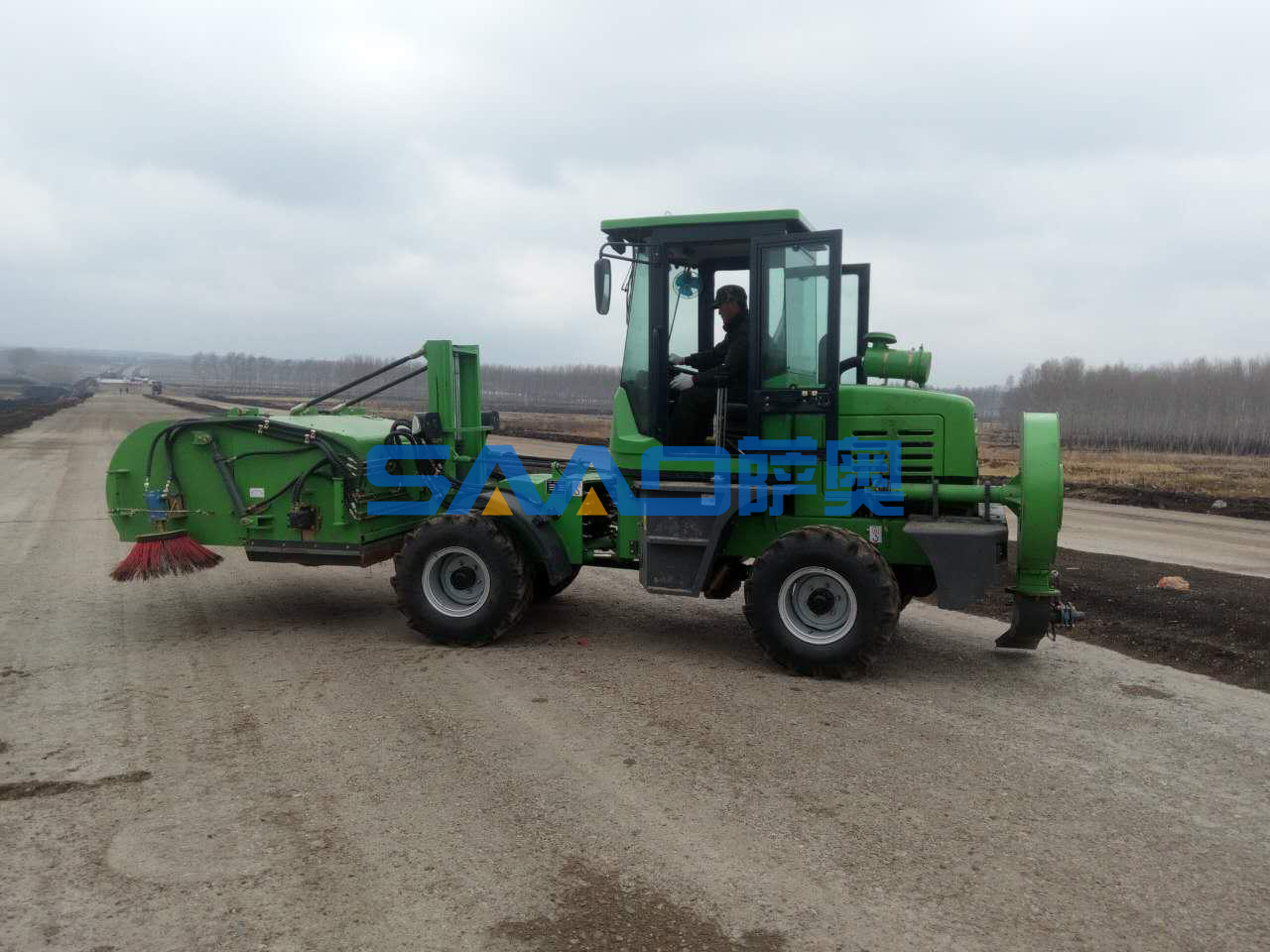 薩奧道路施工強力清掃機(SA160QT),吹掃一體機,動力強勁、垃圾可回收,邊掃邊吹風,一次性徹底解決路面垃圾厚的問題,大容積垃圾箱裝料多,自動掃水降塵、自動卸料,垃圾非常方便裝車,裝車高度3米、自動檔駕駛操作簡單靈活,兩邊盤刷作業讓死角無殘留,是道路施工路面垃圾清掃設備,專業用于高速公路、市政建設和路橋建設過程中水穩層及銑刨路面的清掃工作。