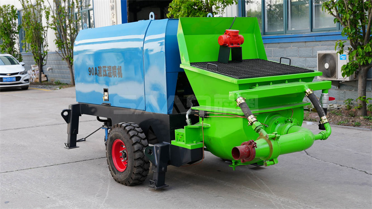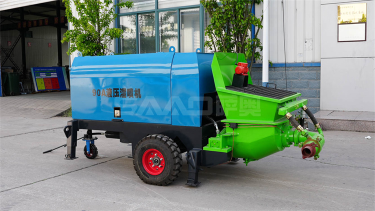 液壓濕噴機是利用液壓泵產生的推力,使用兩個油缸往復交替運動,將稠密流物料由輸送管道送至混流管處,經壓縮空氣形成稀薄流 通過管道送至噴頭處,在噴頭加入相應比例的速凝劑,直接噴漿到受噴面上的一種機、電、液、三合一的機械設備,被普遍應用于公路、鐵路、隧道、建筑、水電站等工程建設中。