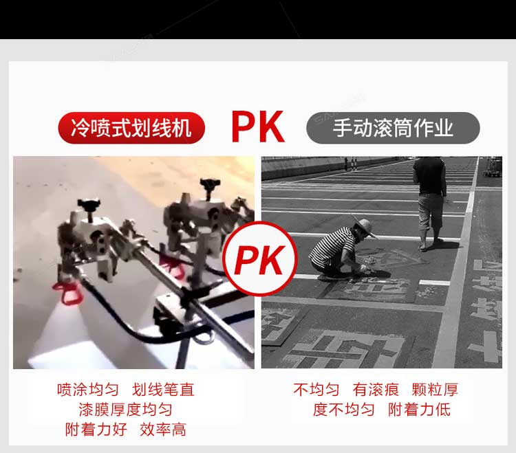 產品介紹: 冷噴劃線機是常溫標線施工的專用設備,噴出的線型清晰、流暢、飽滿、均勻,主要用于公路、停車場、機場、加油站、公司廠區等涂畫直線、虛線、曲線、斑馬線、文字、