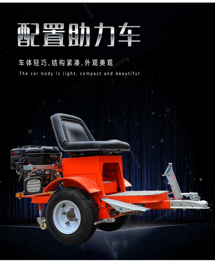 產品介紹: 自走式熱熔劃線機,一種廣泛應用于道路、高整公路、停車場、廣場和跑道的在平整的地面上劃出不同約束、指引和警示等規則限制標志的路面施工機械。劃線機以其快速、