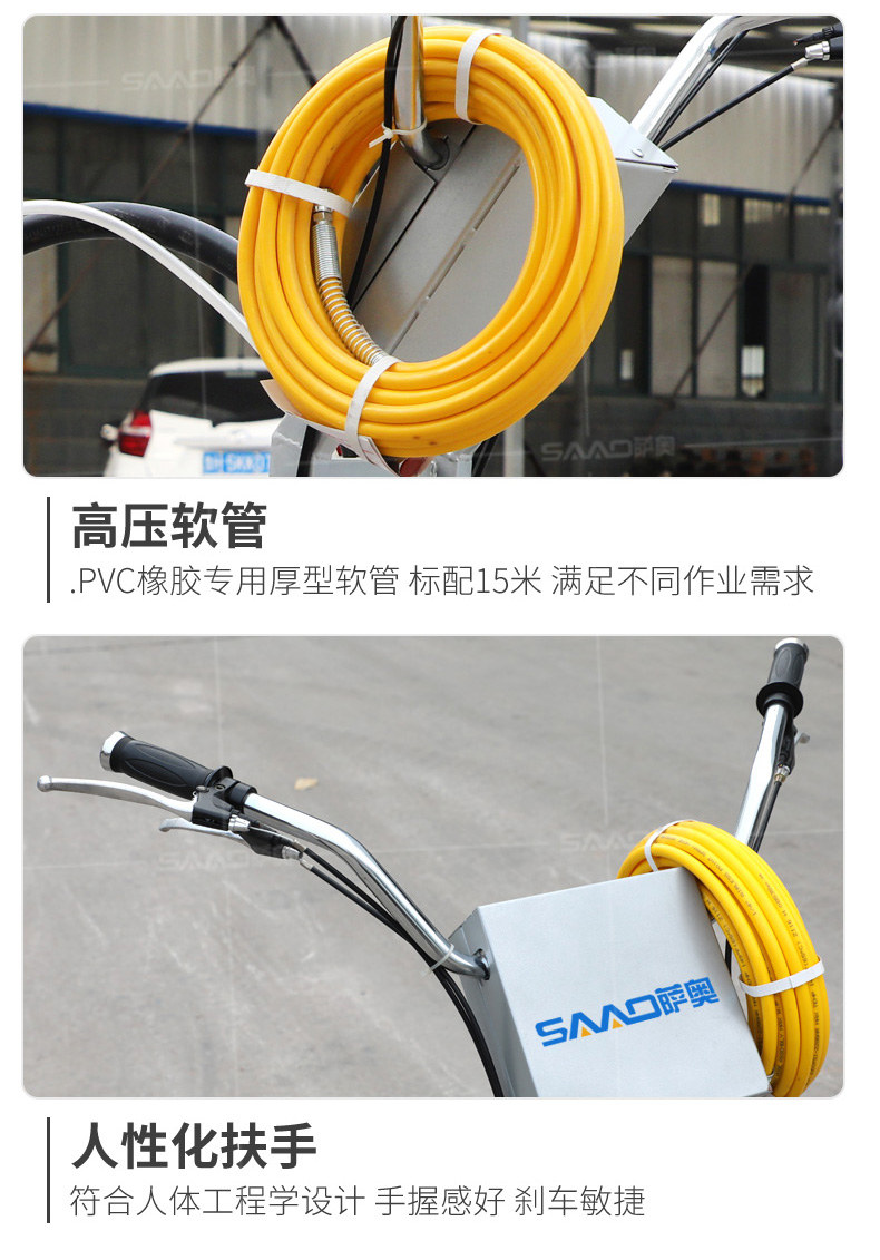 小型手推式道路劃線機是一種在道路、停車場、廣場和跑道等平整地面上劃出不同約束、指引和警示等規則限制標志的路面施工機械。最常見的就是在馬路上劃斑馬線,在路上劃車庫線