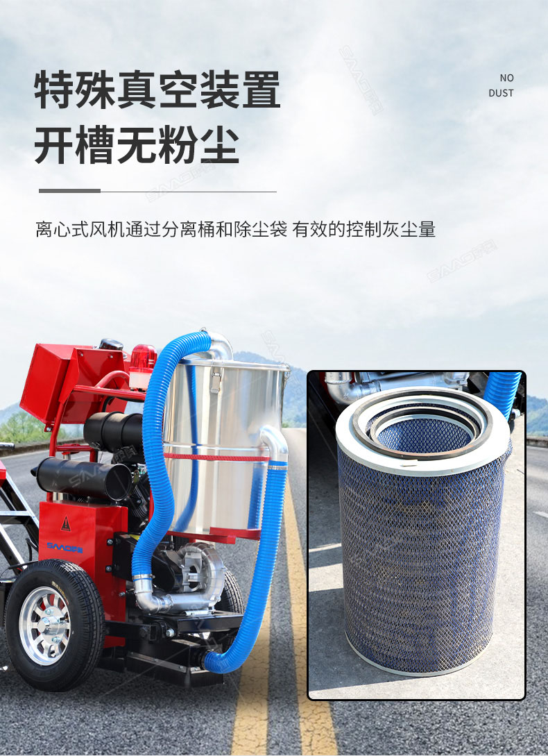 自吸塵式路面開槽機主要用于瀝青路面修補裂縫開槽的機械,其集吸塵、開槽為一體,環保性好,工作效果高,是路面開槽施工不錯的選擇。