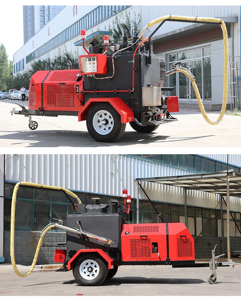 主要功能:通過一根單獨的加熱軟管將加熱融化后的橡膠瀝青基密封材料連續(xù)注入清理過的縫隙完成裂縫病害密封處理。輔助灌縫設(shè)備完成裂縫密封的設(shè)備有(開槽機、熱風(fēng)槍),密封材料主要是瀝青基橡膠密封膠。