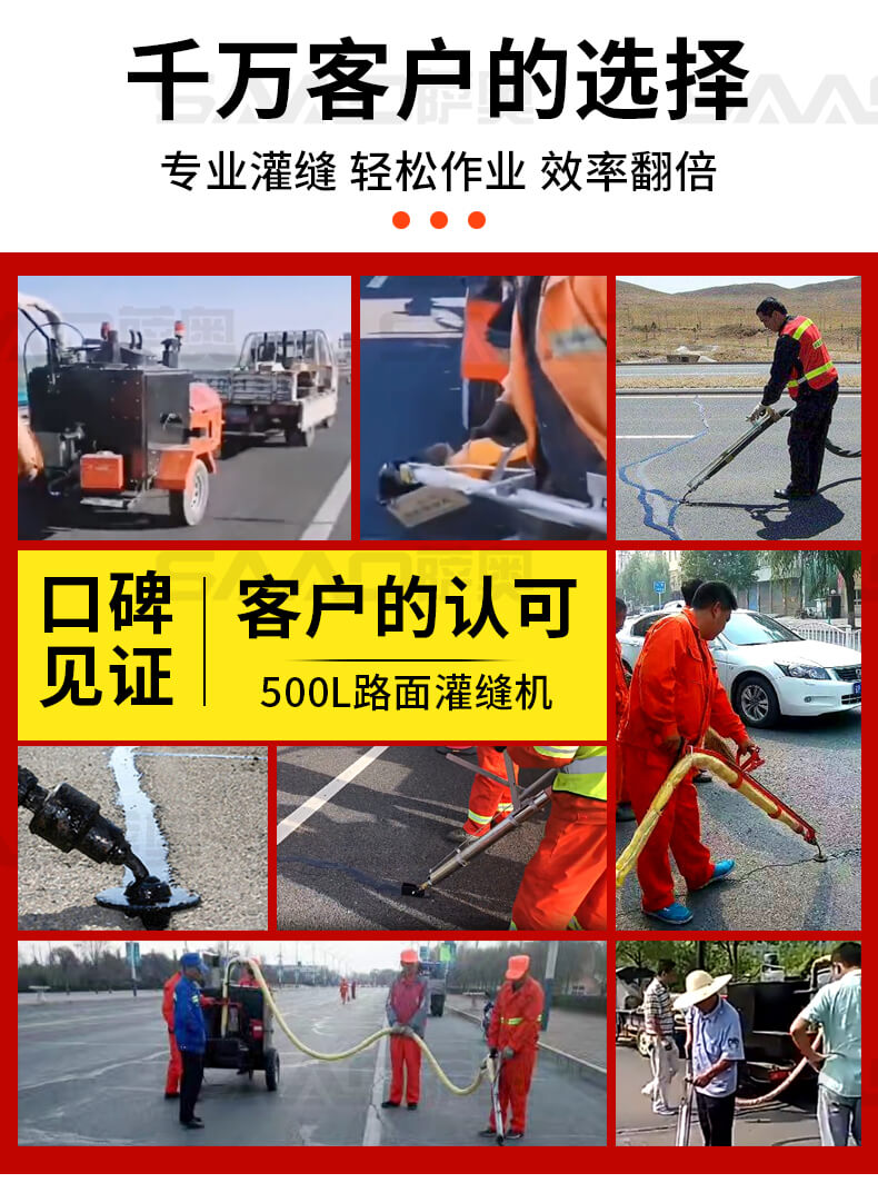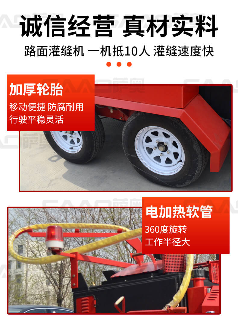 SGF-500路面灌縫機適用于瀝青路面或水泥路面裂縫密封灌縫,是中、大型路面裂縫養護工程量施工首選設備。