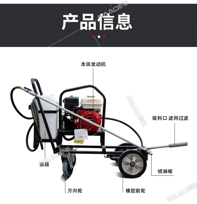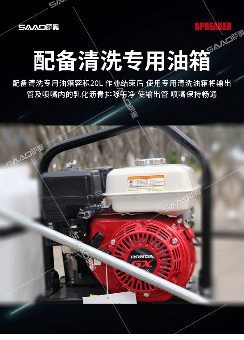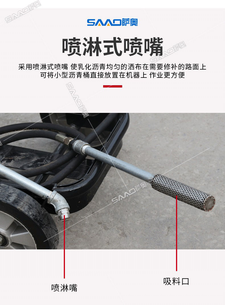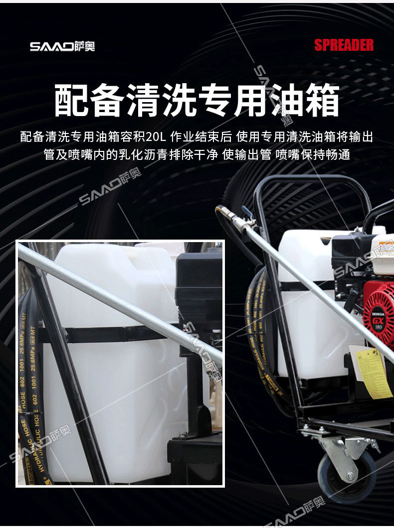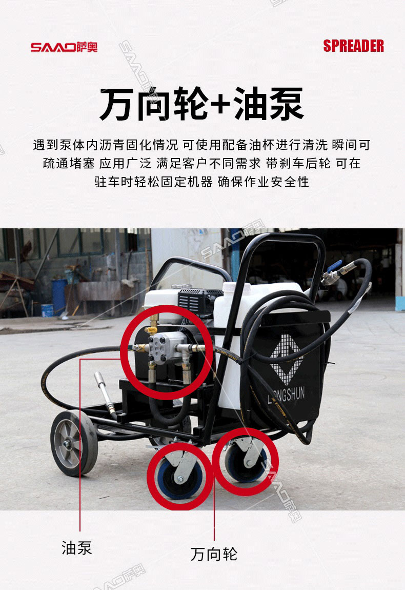 小型乳化瀝青撒布機用于修補瀝青道路上的坑槽,裂縫或對即將老化的路面進行表層噴層修復翻新,由于在養護瀝青道路時經常需要對路面均勻噴灑乳化瀝青或防水材料。