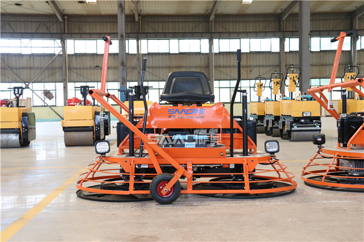 座駕式抹光機一機雙盤的設計大大增加了工作面積,一次工作寬度可達2米,使作業速度加快,收光作業事半功倍。整機結構簡單設計緊湊,駕駛型抹光機整機自重348公斤,對混凝土層起到很好的壓實效果,收光地面平整且密實性好,使用壽命長。