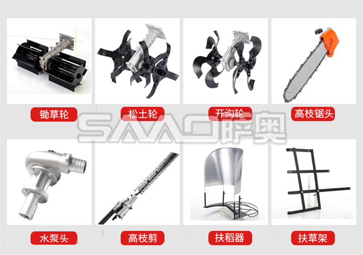 薩奧小型背負式多功能收割機廣泛用于,收割小麥、水稻、青稞、麻類、豆類等農作物。換上相應的刀具,裝上上下托板和安全的防護罩,還可以收割灌木、牧草、蘆葦及茶園枝頭修剪和花圃。小型收割機配帶汽油動力強勁有力,方便實用,效率高,便于攜帶及野外田地作業。突破了農村無法進入大型收割機收割的作業瓶頸,推進了收獲作業的機械化,縮短了勞動周期,并讓人們從繁重的體力勞動解放出來。