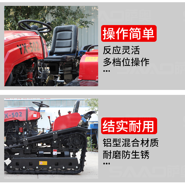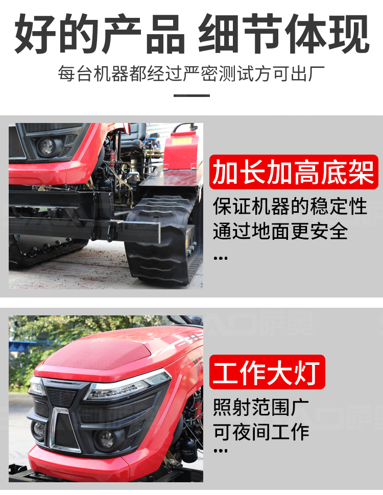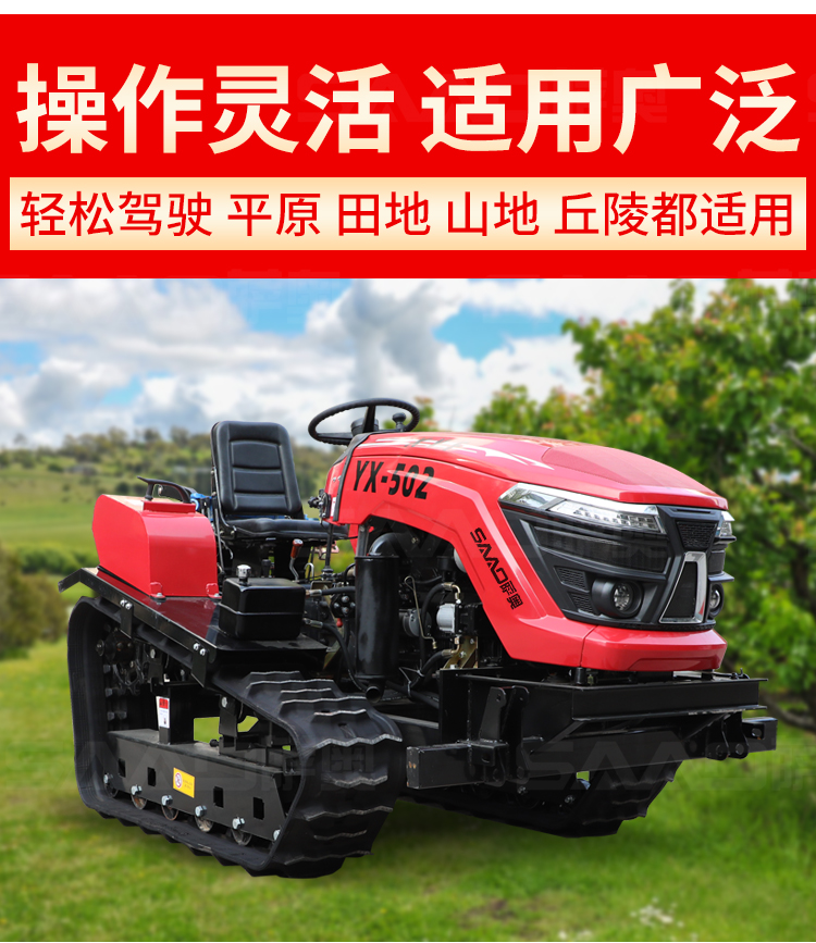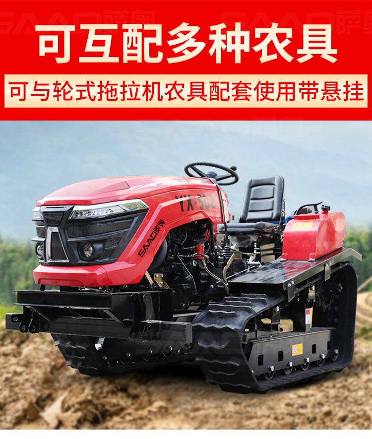 履帶拖拉機本機能完成耕、耙作業(yè),具有碎土能力強、耕后地表平坦等特點。采用寬耕幅、對稱懸掛使輪跡全部覆蓋,有省時、省力、作業(yè)質(zhì)量高成本低等特點。