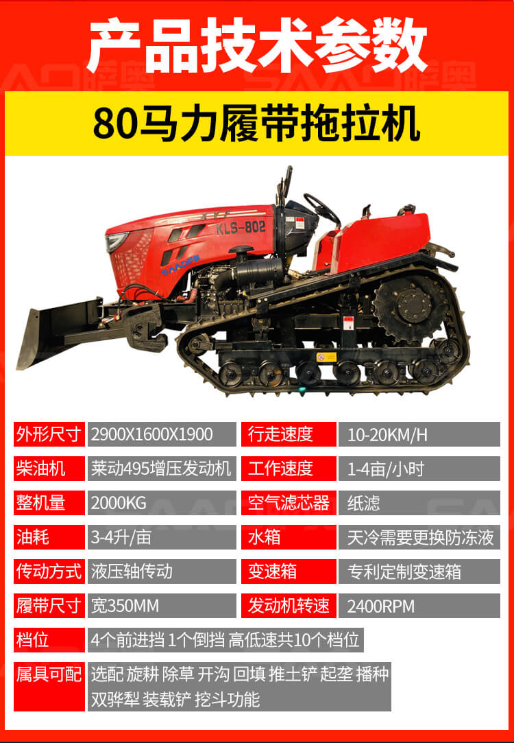 80馬力履帶拖拉機可水旱兩用,功能多,動力十足。
