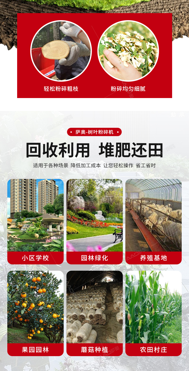 該產品安全可靠、粉碎效率高、效果好。切片、碎霄用途。覆蓋裸露土壤,防止揚塵,凈化空氣。良好的有機肥,可以改良土壤和盆栽土壤。有機肥添加物、花卉盆栽土填料、食用菌栽