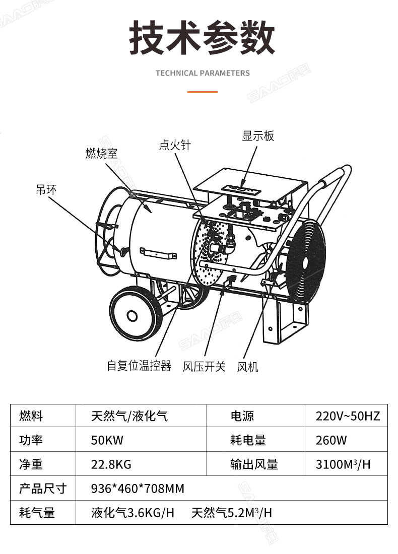 50kw燃氣暖風機手提