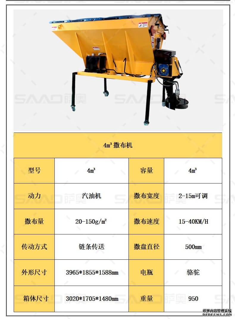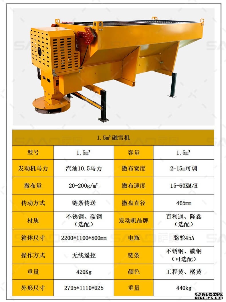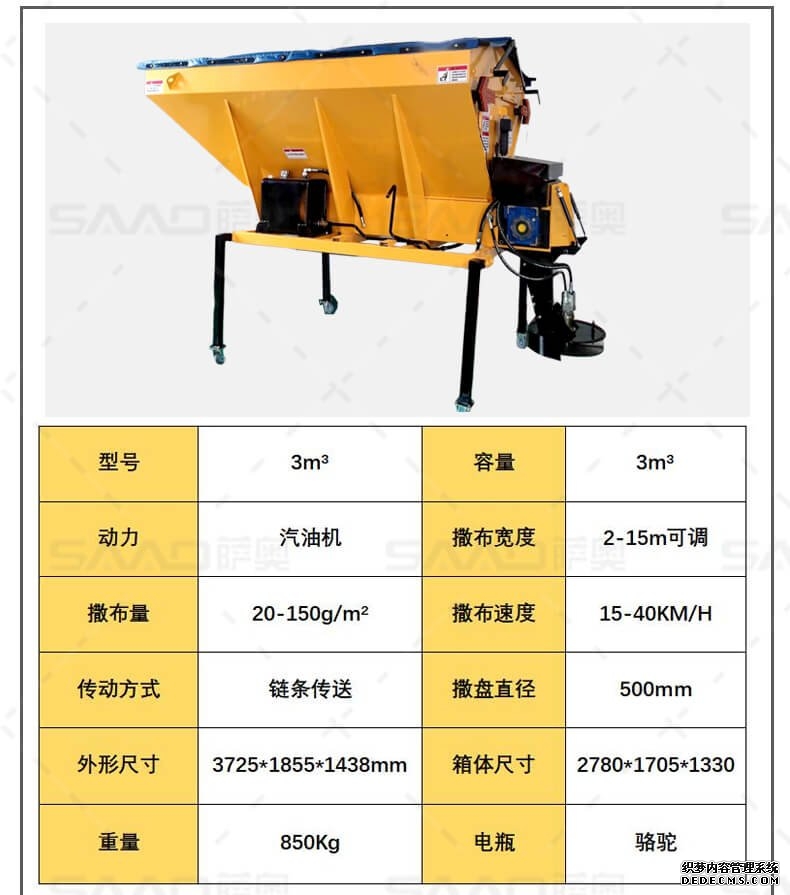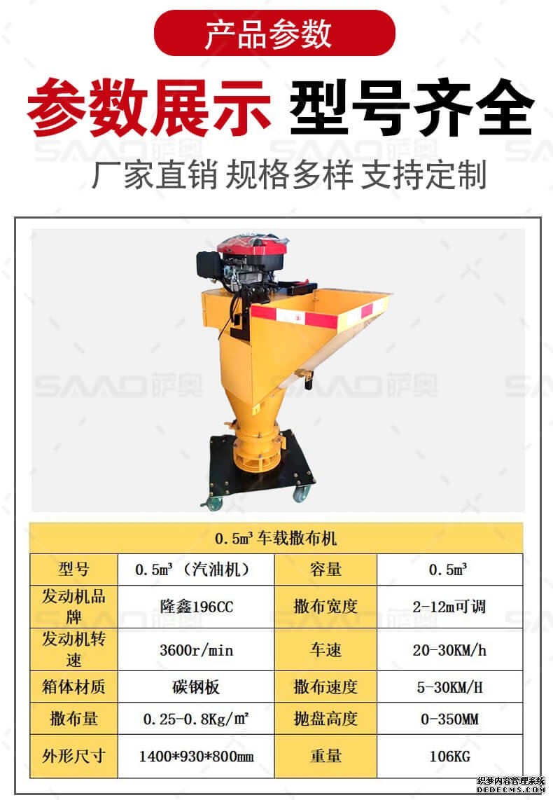融雪劑撒布機是車載式撒布機,適用于冰雪路面防滑沙料和融雪劑的撒布,是市政公路、高速公路的融雪撒布的便利設備。