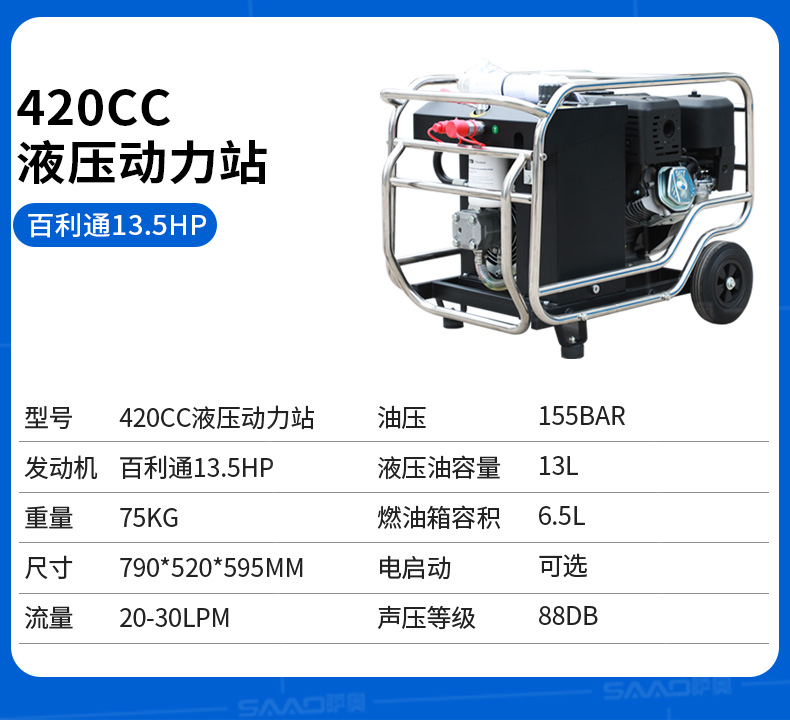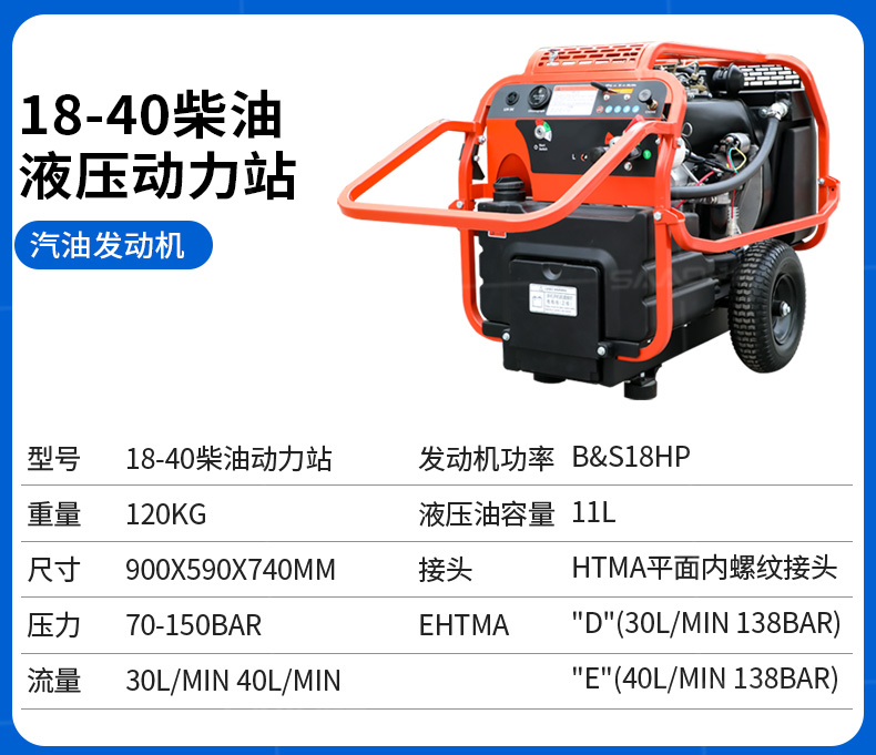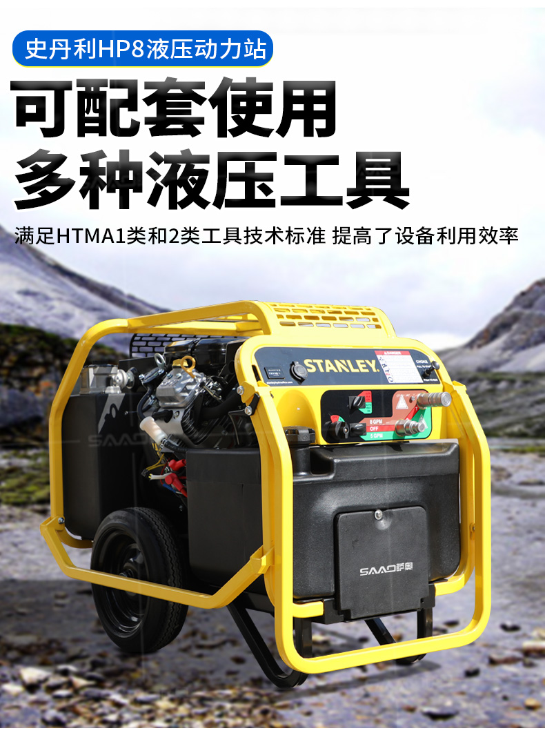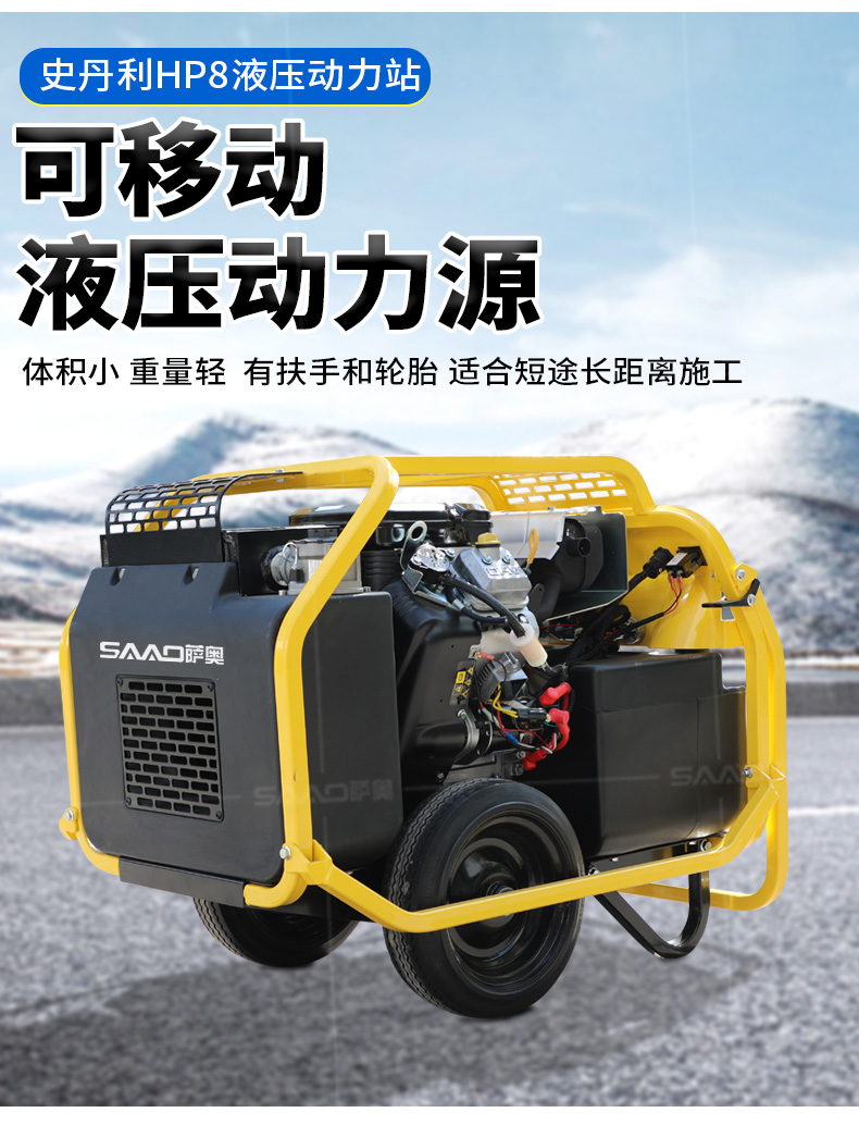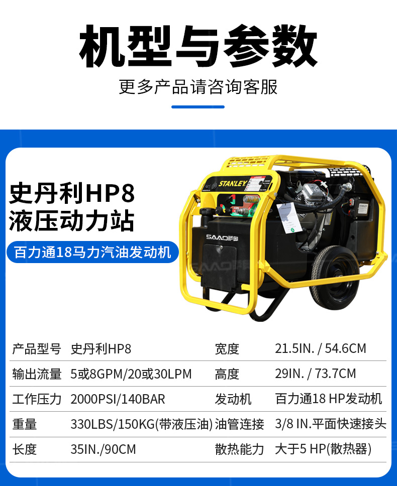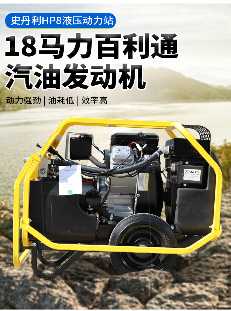 HP8動(dòng)力站是為液壓設(shè)備提供持續(xù)動(dòng)力的,它同時(shí)滿足1類和2類液壓設(shè)備。它采用百力通18馬力 汽油發(fā)動(dòng)機(jī),有良好的液壓油散熱系統(tǒng),以滿足液壓設(shè)備可以正常、持久地工作。