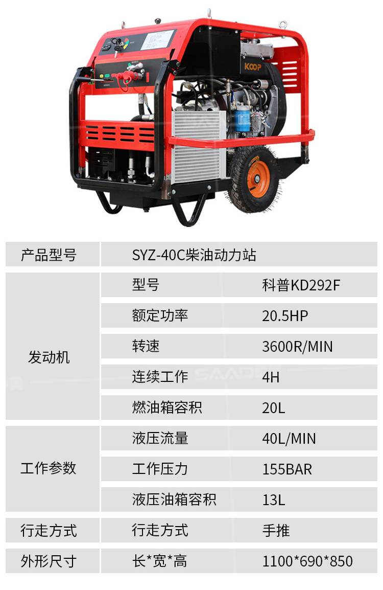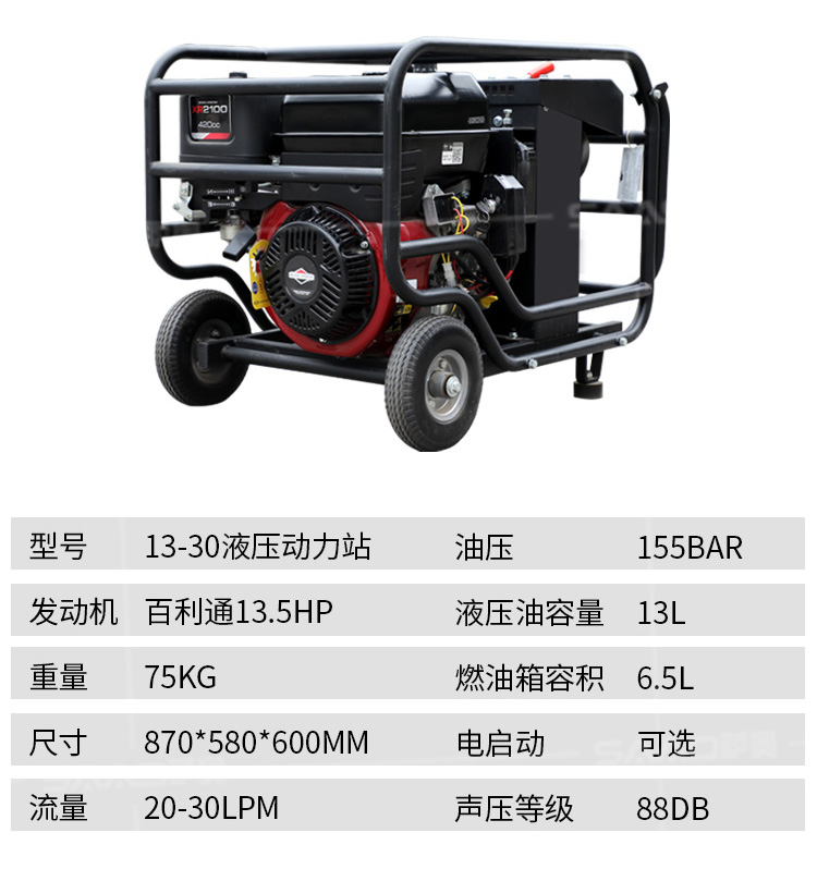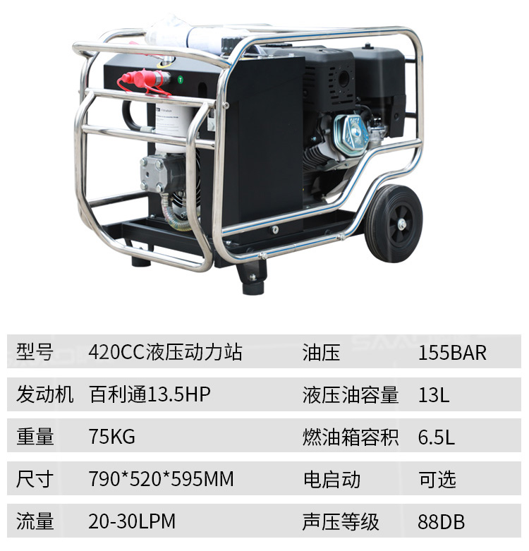 液壓動力站采用先進(jìn)的技術(shù),可提供汽油或柴油風(fēng)冷式內(nèi)燃發(fā)動機,燃燒效率高,重量輕,堅固耐用,使用壽命長,且不用擔(dān)心發(fā)動機過載。