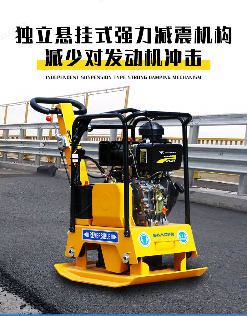 雙向平板夯適用于路基邊緣、橋涵、管道、溝槽底部等狹長地帶的壓實