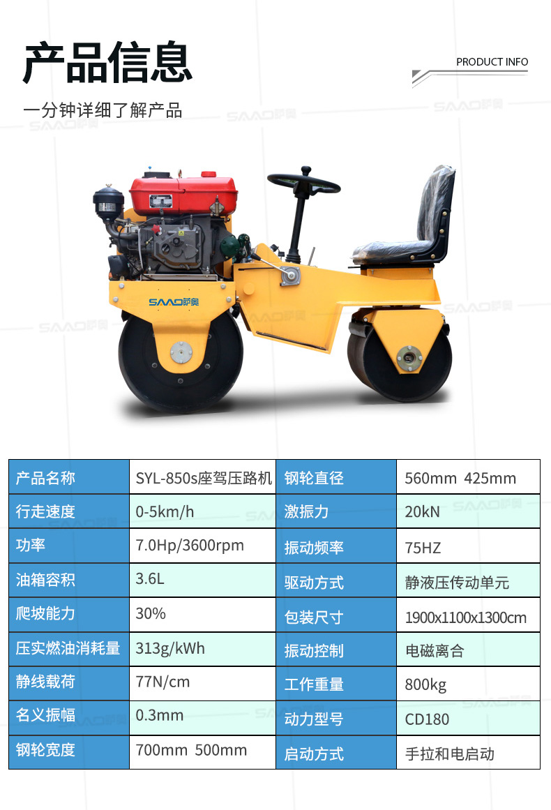 SYL-850S座駕振動壓路機