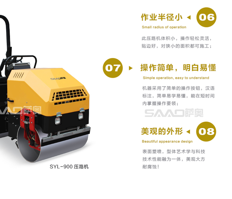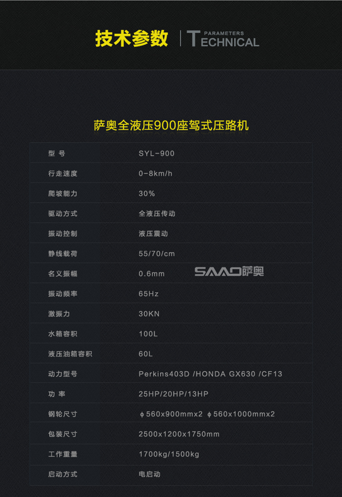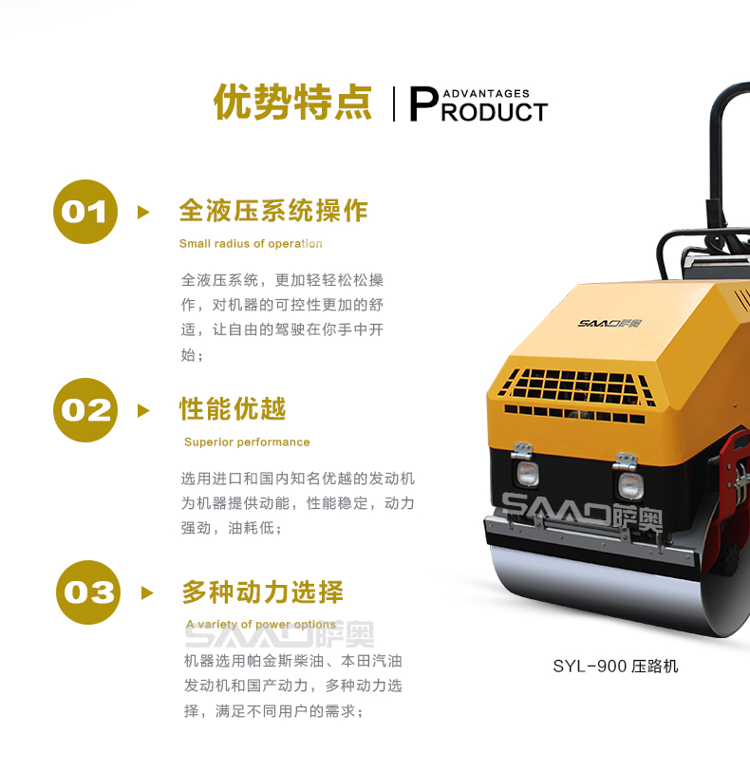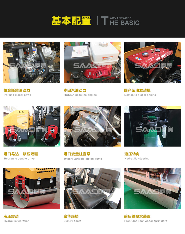 ·發動機電啟動,機器采用液壓振動控制,操作更加輕松方便;