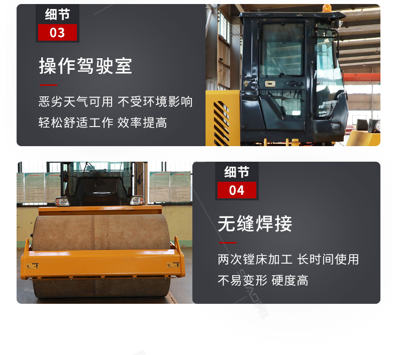 8噸壓路機主要應用市政道路、公路維護,具有強大的激震力及很高的靜線壓力,適宜于碾壓非粘性材料如礫石、礫土、碎石、砂石混合料和巖石填方以及粘土等。